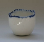2011Kleinood, dun porcelein, handgemaakt met kristalglazuren randje.