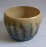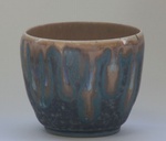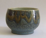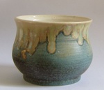 2011Een handgemaakt kreukelpotje met kristalglazuur van binnen en een levendig matglazuur aan de buitenkant.