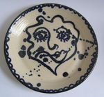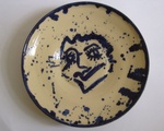 2012Twee in een: een schildering op een gedraaid steengoed bordje.