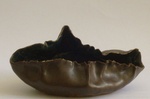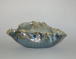 2009Dun schaaltje met gekreukelde gevouwen rand van hooggebakken steengoedkeramiek met speciaal kristalglazuur.