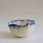 2015Porseleinen minischaaltje met kristalglazuur. Handgevormd, unica.