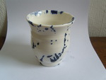 2012Porseleinen gedraaid vaasje, met delftsblauwe decoratie.